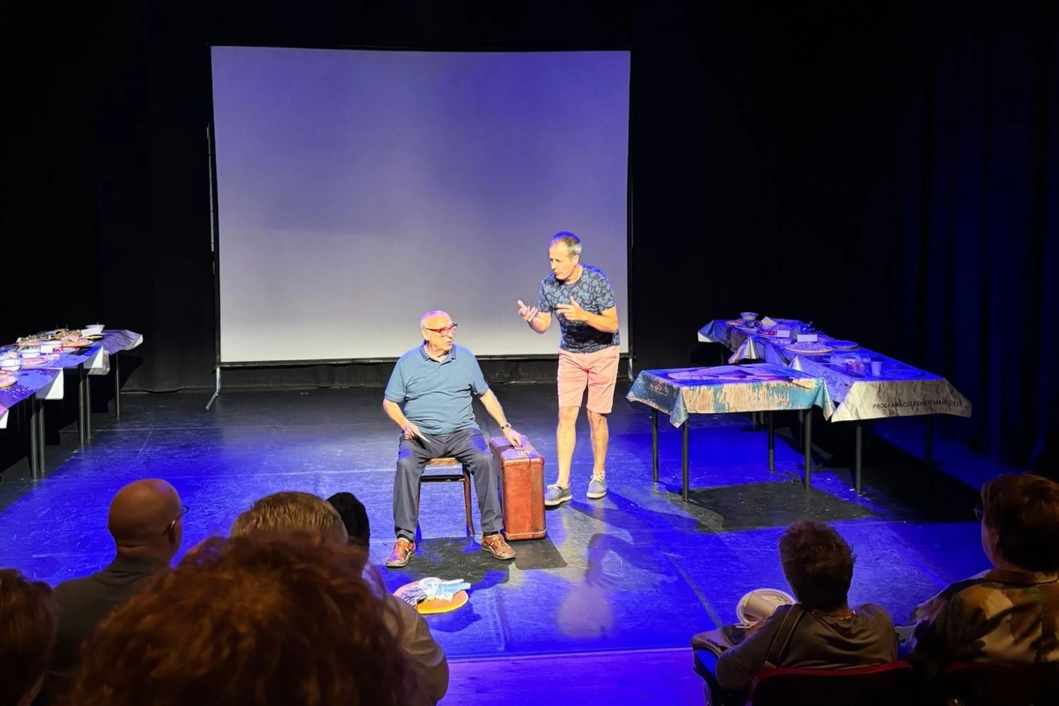 Com a final del sopar, l’actor igualadí Joan Valentí va escenificar un fragment del seu espectacle La maleta, basat en la novel·la homònima de Núria Parera, on a través de la història d’una maleta i de les diverses mans per les quals va passant, sorgeix una reflexió sobre el pas del temps, els canvis generacionals i el fet migratori.